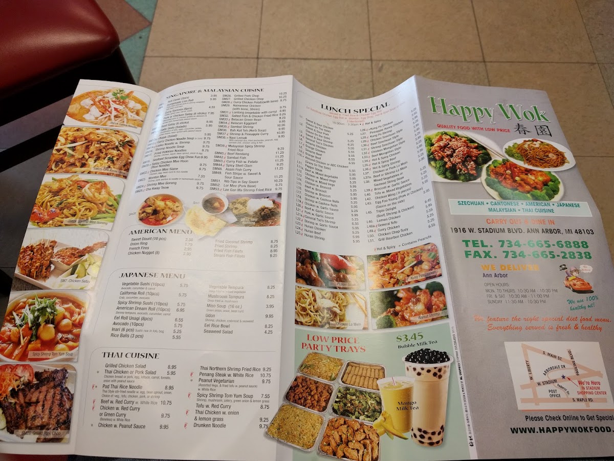Welcome to Happy Wok - Ann Arbor, where traditional Chinese flavors meet modern convenience. Located at 1916 W Stadium Blvd, this gem is celebrated for its extensive menu featuring delectable appetizers like Chicken Egg Rolls and Crab Rangoon, as well as sumptuous soups, delectable Lo Mein options, and much more.